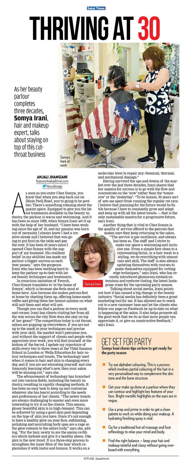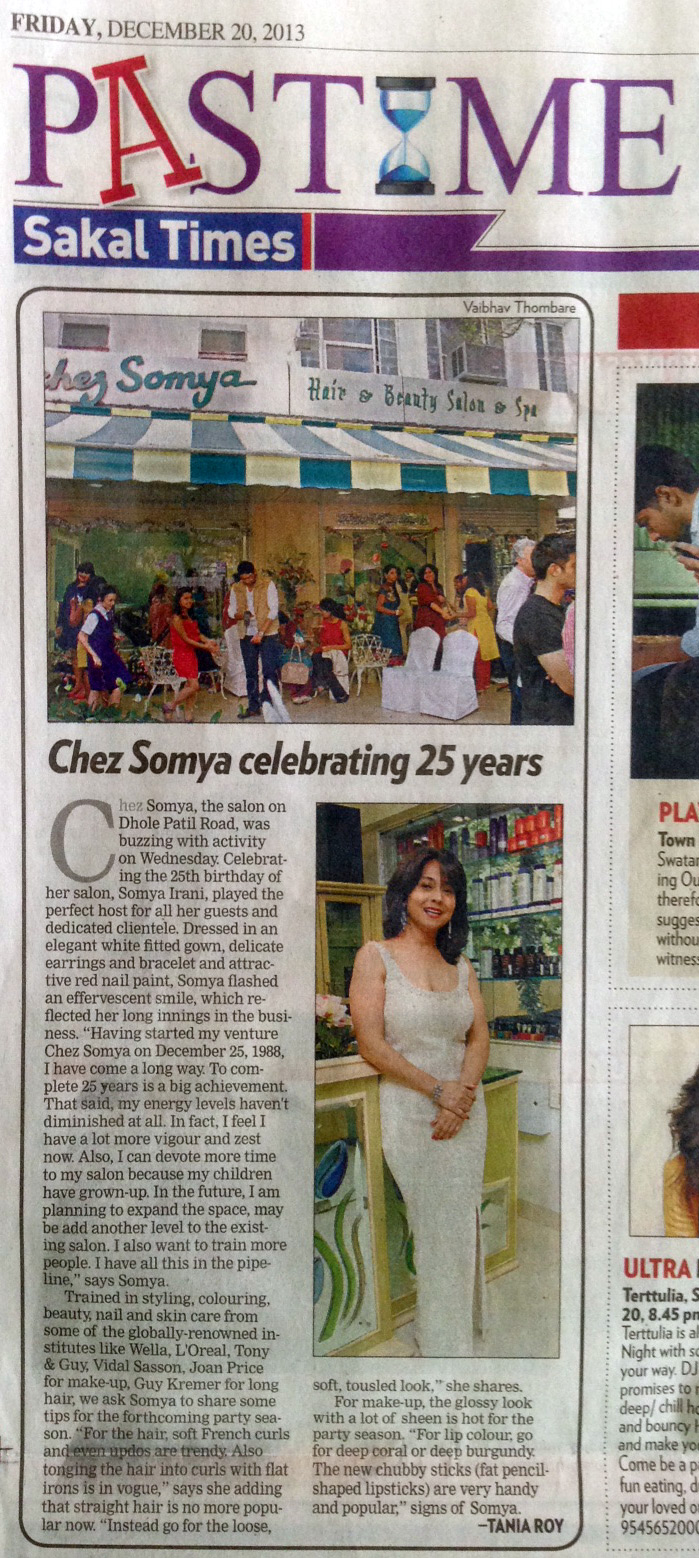 Chez Somya opened its doors on the 25th of December 1988. The zeal to give her best motivated Somya to continuously upgrade. Somya trained in the latest in styling, coloring, beauty, nail and skin care at some of the top institutions in the fashion capitals of world- London & Paris. Wella, L’Oreal, Tony & Guy, Vidal Sasson, Jingles International, Joan Price for makeup, Guy Kremer for long hair….the list is long.